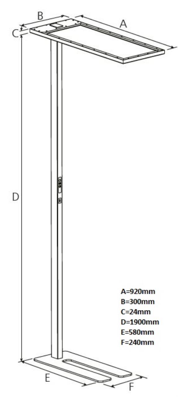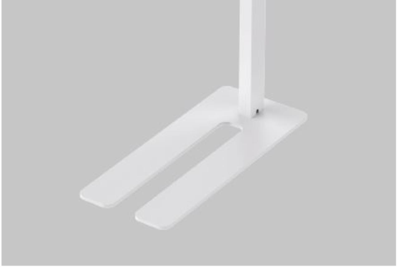 Diese freistehende Lampe besteht aus drei Teilen: flachem Lampenkörper, Lampenmast und Lampensockel.